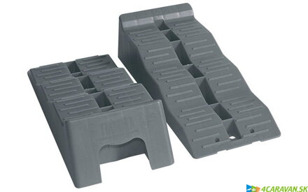 Vyrovnávacie nájazdové kliny, ideálne pre stabilné zaparkovanie karavanu, obytného auta alebo prívesu na nerovnom teréne. Vďaka trom výškovým úrovniam umožňujú presné vyrovnanie vozidla. Sada obsahuje 2 kusy klinov a praktickú tašku na uskladnenie.