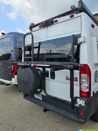 Praktický držiak rezervného kolesa s integrovaným rebríkom na zadné dvere dodávky. Ušetrí miesto vo vnútri, zlepší prístup na strechu a zvýši bezpečnosť jazdy. Vyrobený z ľahkého hliníka, odolný voči poveternostným vplyvom.