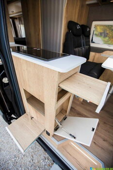 Veľkoryso dimenzovaný obývací priestor s rozšíriteľnou stolovou doskou vytvára dostatok priestoru pre spoločenské stretnutia počas cestovania . V skriniach nájdete dostatok úložného priestoru pre vaše cestovné nevyhnutnosti . Kuchynský blok má všetko, čo potrebujete , aby ste sa pri cestovaní postarali o seba .