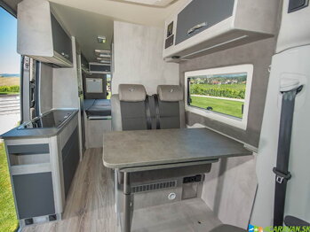- 4 kvalitné výklopné okné Dometic , tónované - so sieťkou proti hmyzu, izoláciou a zatemňovacími roletami (skupina sedadiel - posuvné dvere - zadná časť vľavo a vpravo)
