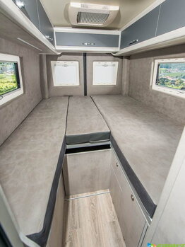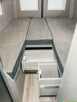 Inteligentný zásuvkový systém vytvára dostatok úložného priestoru a integrovaný schodík uľahčuje vstup do postele. Prepážka sa dá elektricky vysunúť. Inteligentný zásuvkový systém v Mega Vario 680 stanovuje úplne nové štandardy! Skryté pod plochami na ležanie vytvárajú dostatok úložného priestoru pre vaše cestovné potreby.